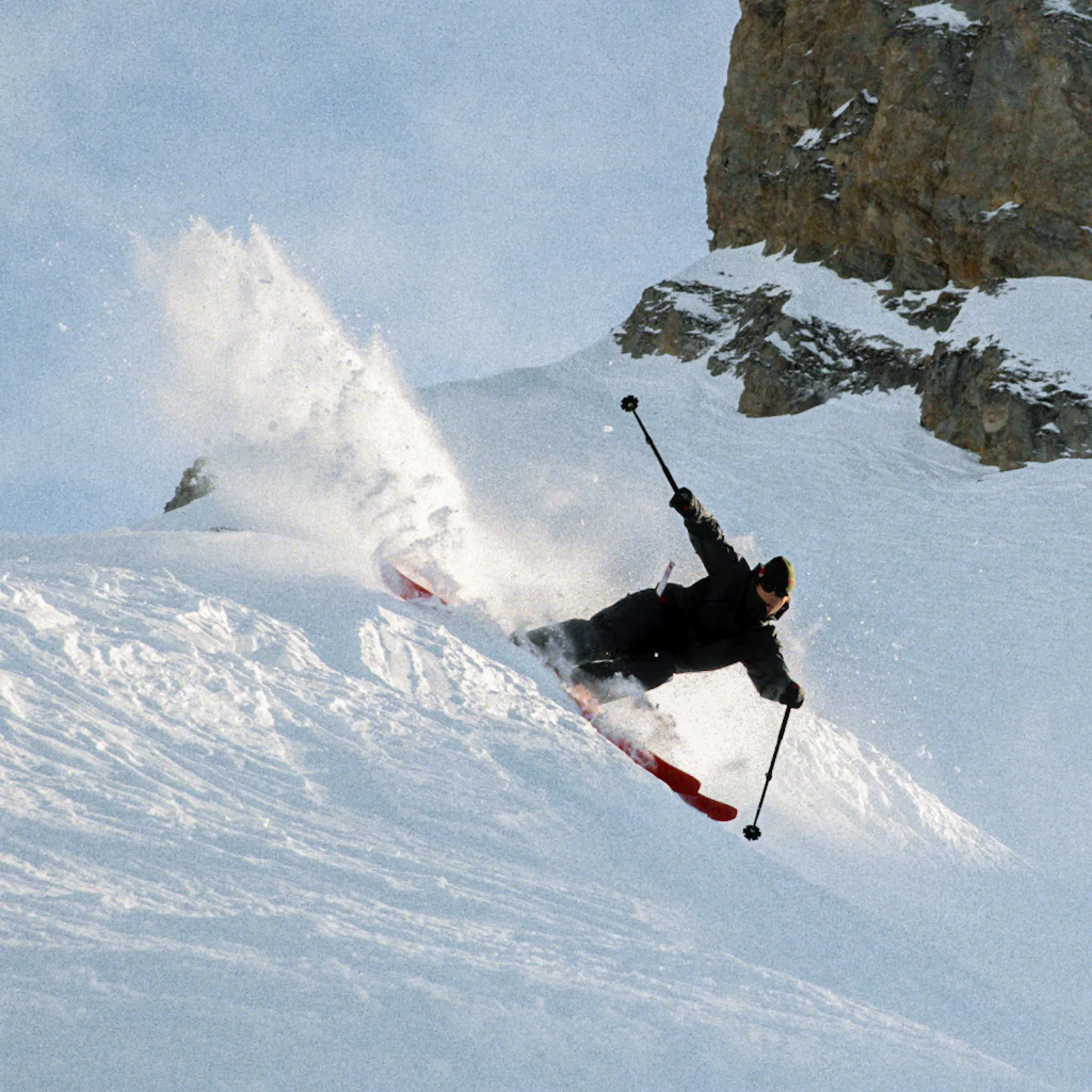 "Screw the piste." That was the only thing on my mind. I didn’t want this to be one of those "one-ski-quiver," halfway-good-at-everything types of skis. I wanted to go freeride first, period. I’d be lying if Shane McConkey’s legendary water ski run in Alaska didn’t have something to do with it; I must have watched that clip a hundred times at this point. On my first run on the first prototype, I almost fell over in the piste because of... well, I wasn’t really sure why I almost fell over. It was a very experimental ski.